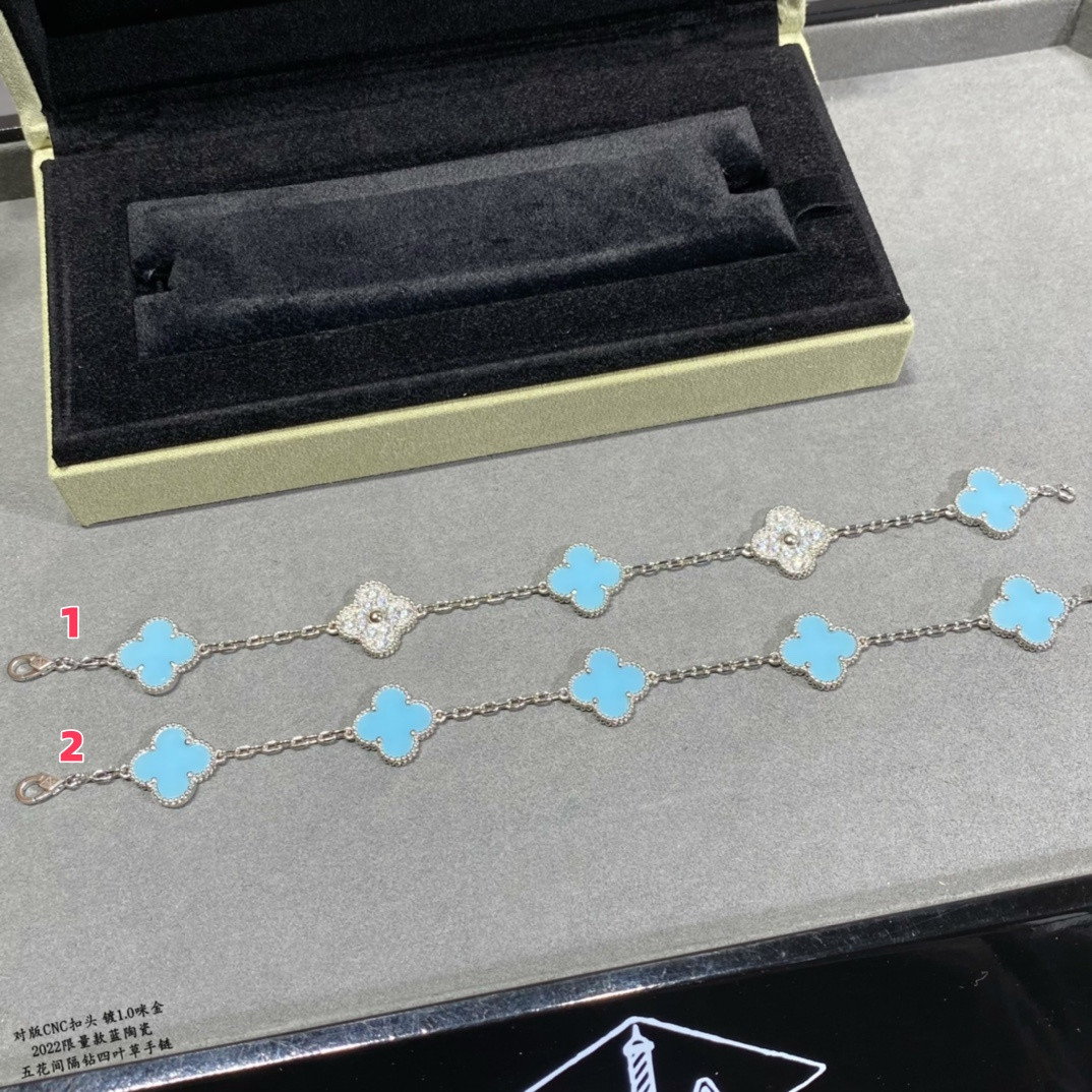 V*N CL*F & arpels natural peter stone interval drilling five-flower four-leaf clover bracelet(no refund or exchange)