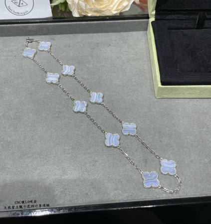 V*N CL*F & arpels natural purple chalcedony ten-flower four-leaf clover necklace
