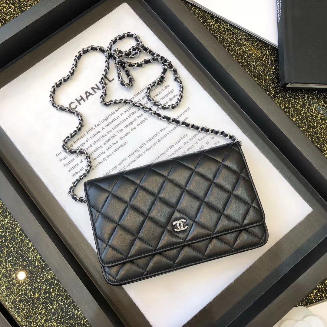 Ch*el 31 nano chain bag lambskin gold tone metal black as3656 17.5x20.5x4cm