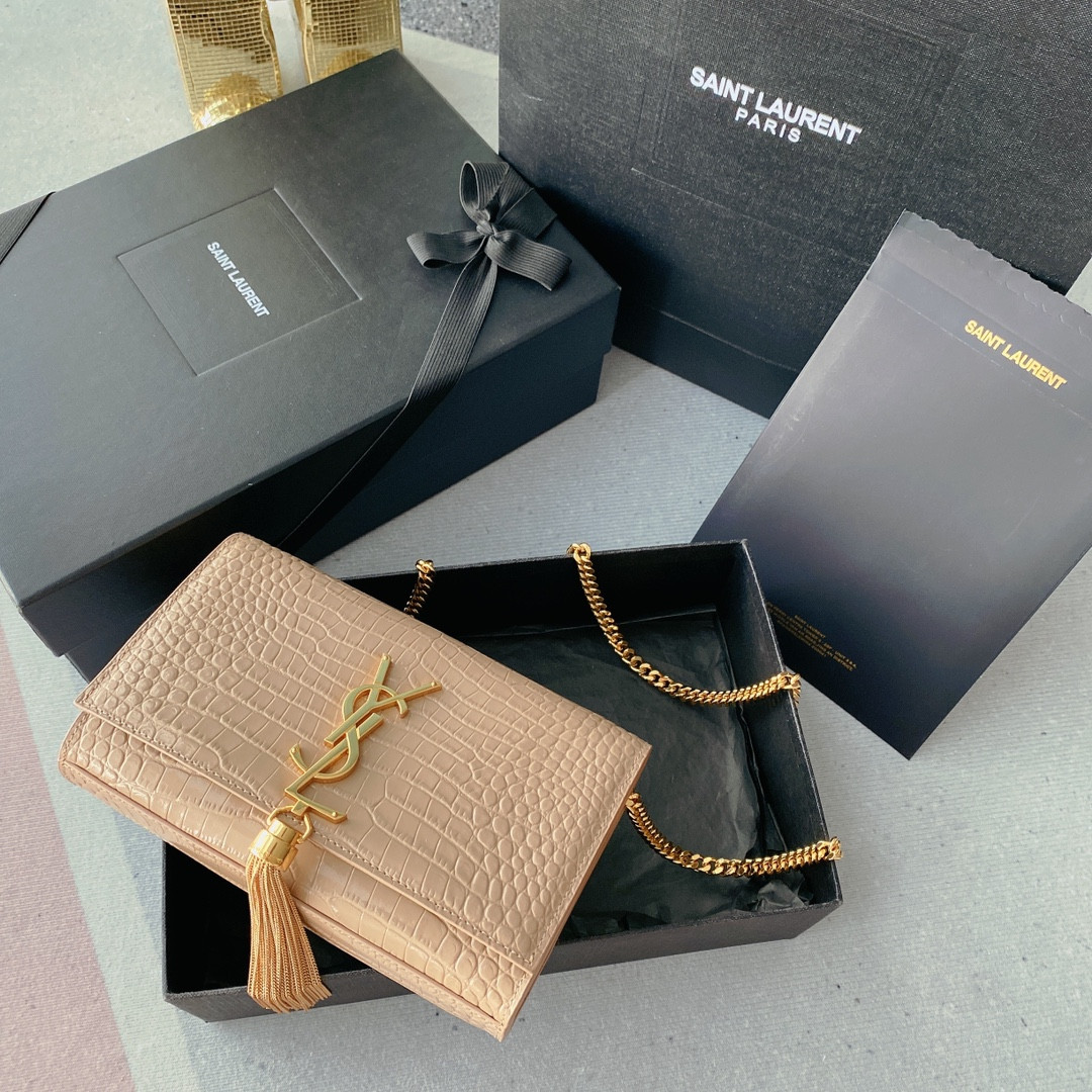 Y*L kate medium tassel in crocodile-embossed leather gray 9.4 x 5.7 x 2.1 inches
