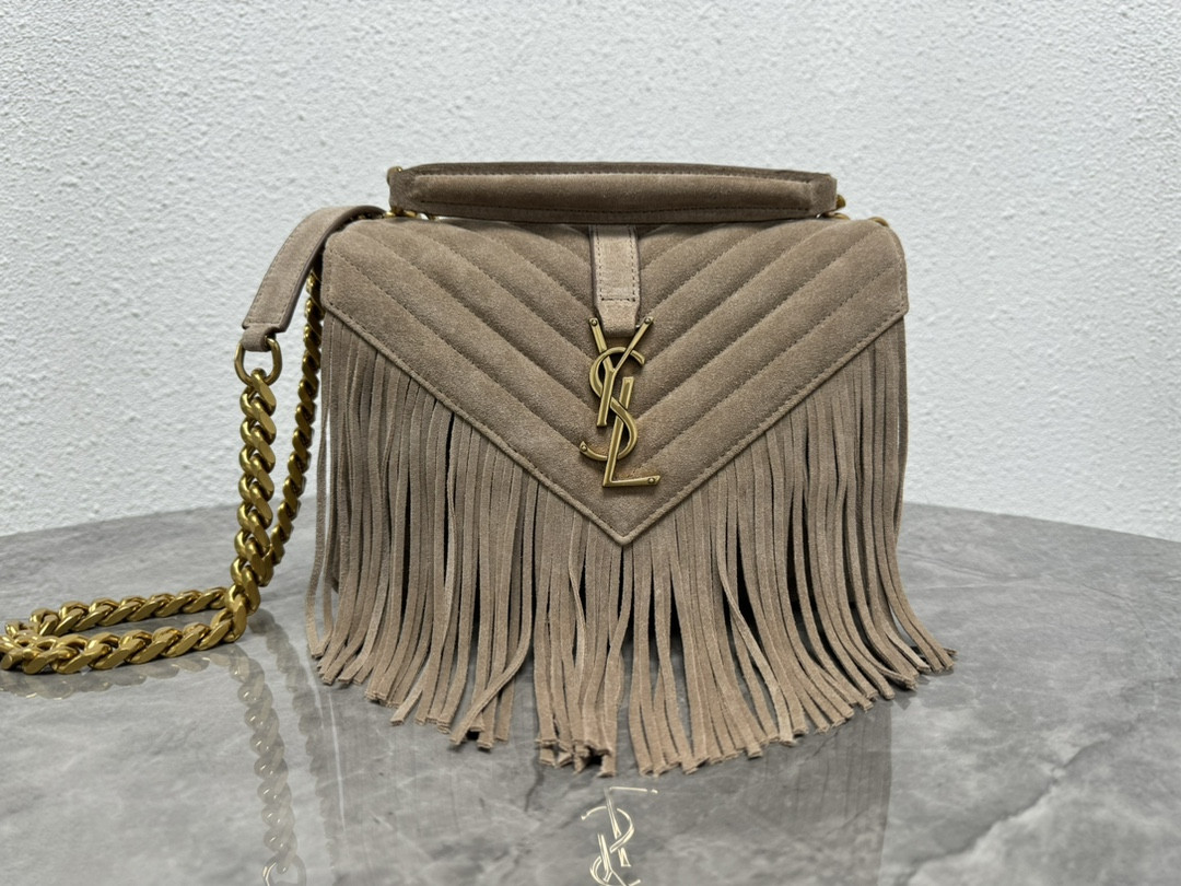 Y*L college medium in quilted suede brown 9.4 x 6.6 x 2.5 inches