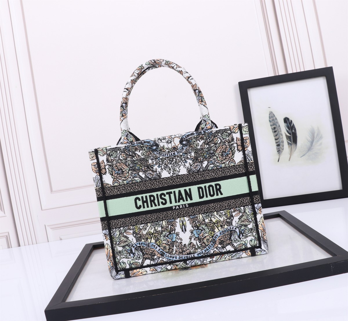 calfskin embossed medium D*or book tote black 14 x 11 x 6.5 inches